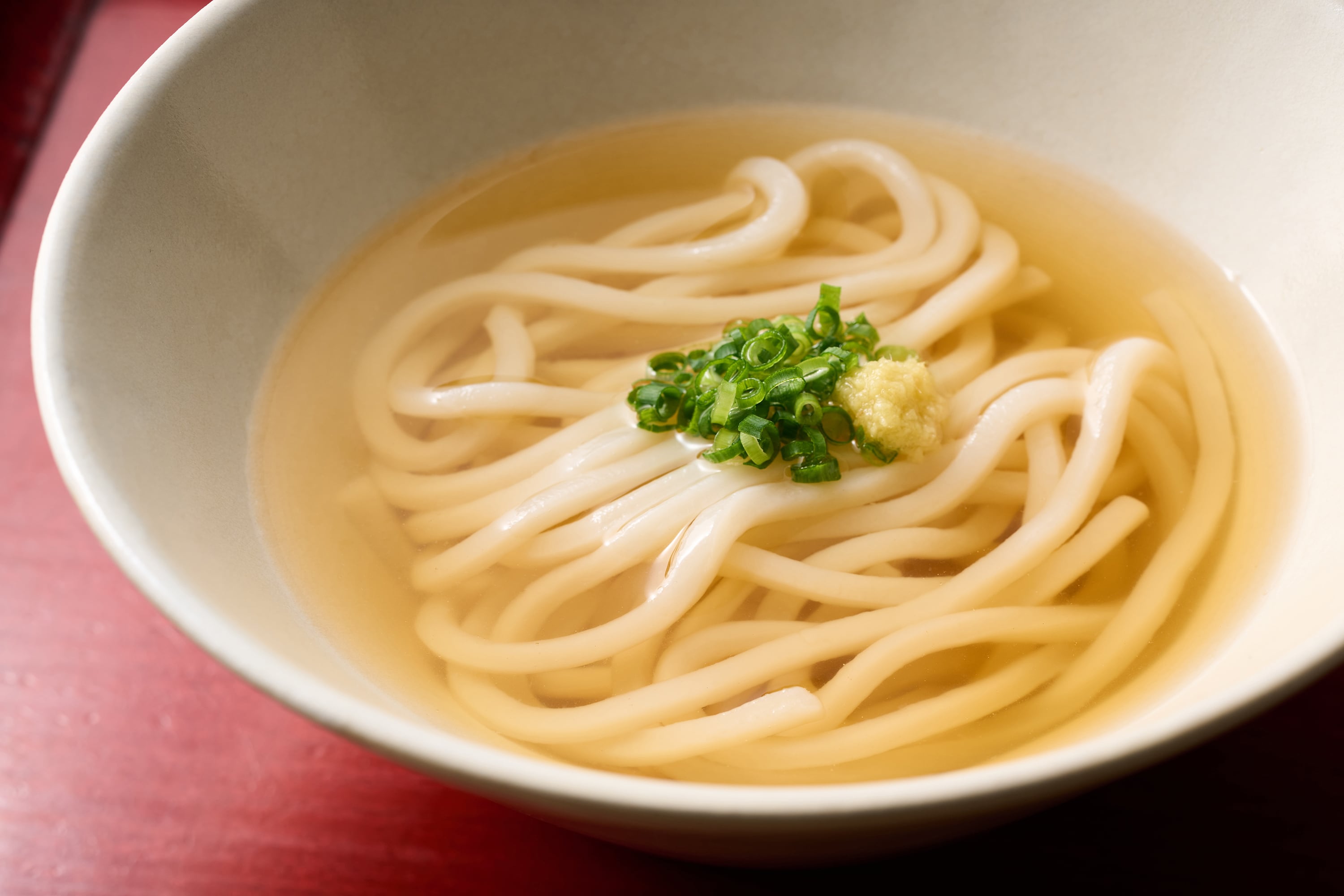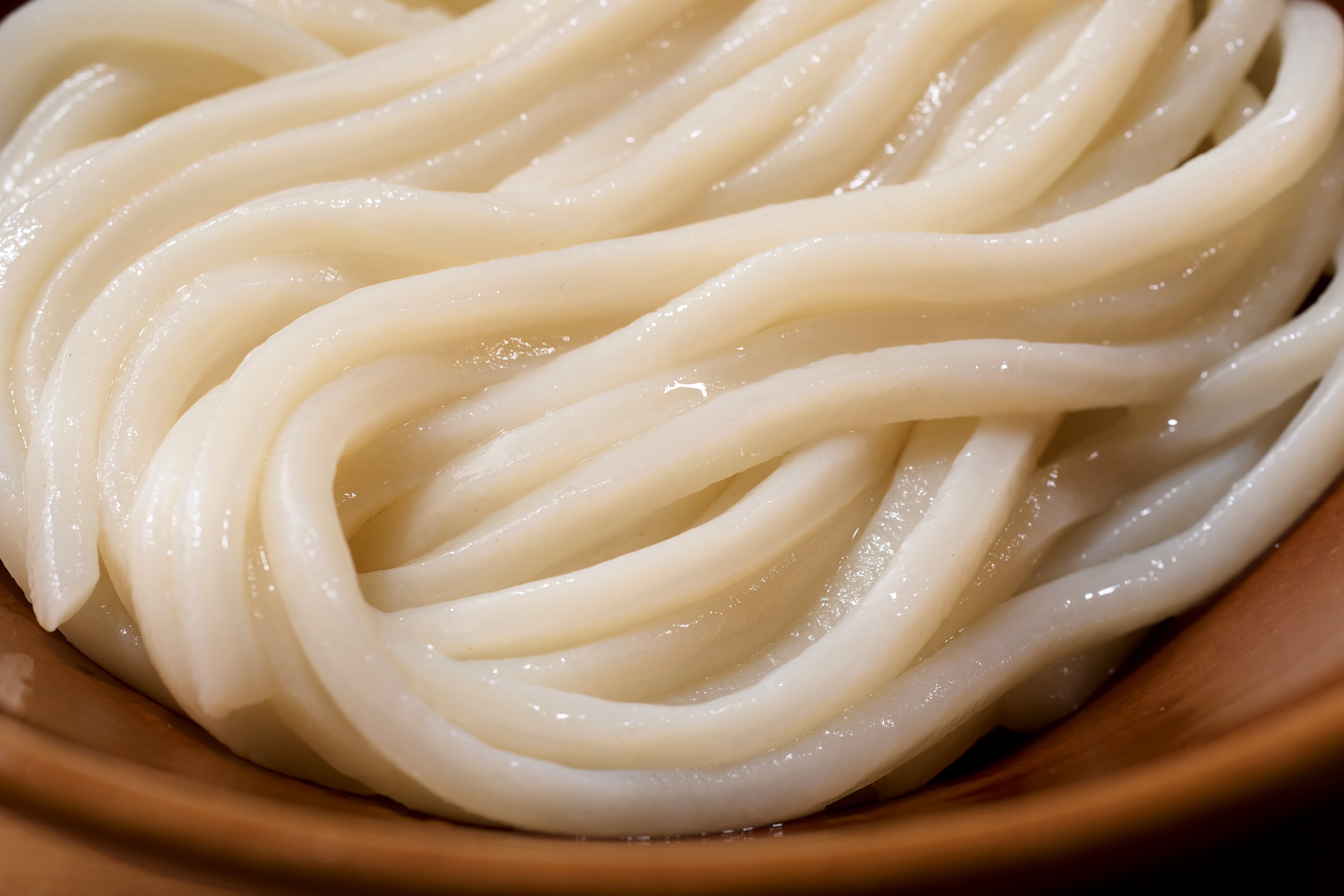 米印製麺のうどんは、グルテンフリーでもしっかりおいしい一杯を届けるために、麺の食感を保つ加工でんぷん(酢酸でんぷん・リン酸架橋でんぷん)をほんの少しだけ使っています。